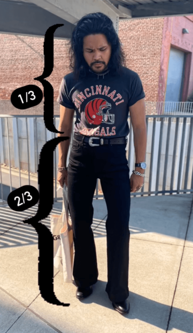 When it comes to choosing the right silhouette for your body type, you want to choose flattering things, but this is all a matter of personal preference. Wear anything that makes you feel confident. Some shorter people might want to look taller and if you are a person of size you might want to choose more flattering cuts. An important element to consider is the rule of thirds. Envision your body in thirds; if you want to look taller you might have your torso be ⅓ and your legs be ⅔ of your outfit. Next is all about balance. If you wear slimmer pants you’d want to pair it with a boxy/looser top and vice versa; a tighter top with a wider bottom.